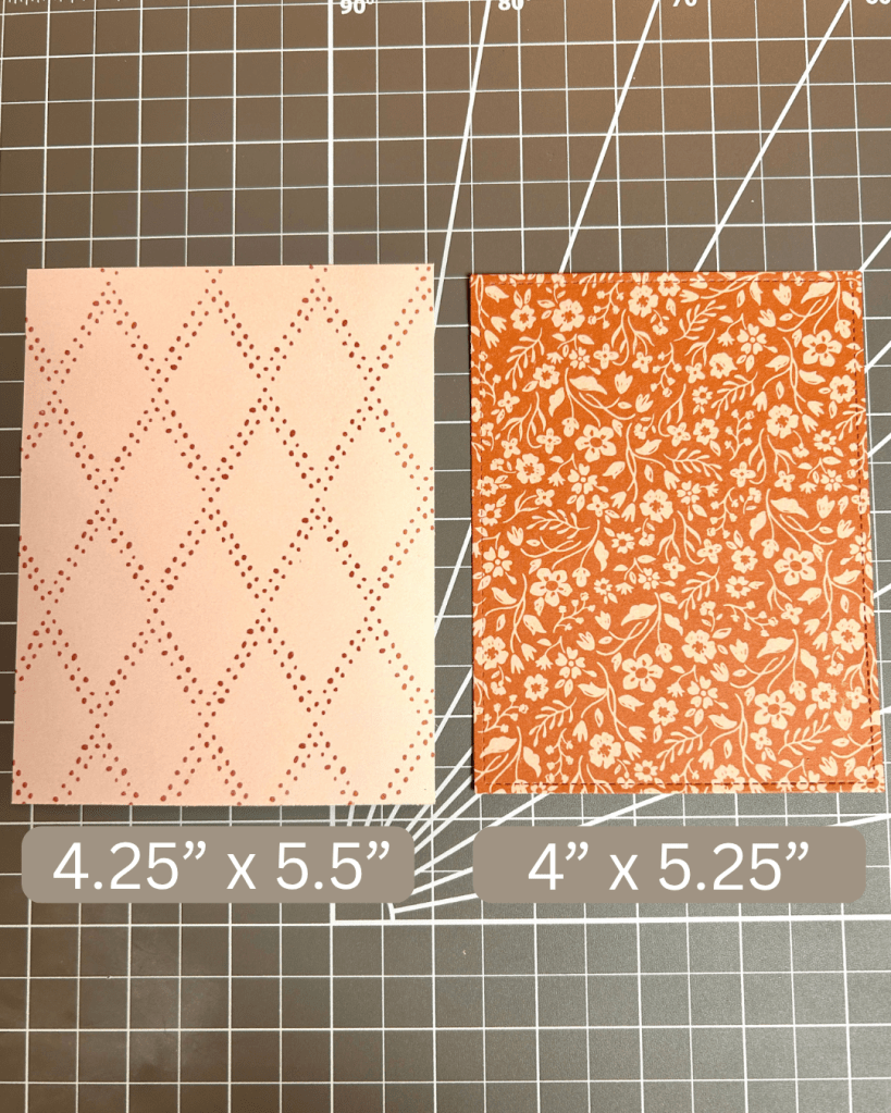 Cut one of your pieces of patterned paper to 4.25” x 5.5”. This piece is going to fit on the front of your A2 size card base in a later step. Then cut your other patterned paper to 4” x 5.25”. If you want to add some texture to your floral card panel, you can use a stitched border die. I used the Outside In Stitched Rectangle dies from Lawn Fawn to add stitching to the edges.