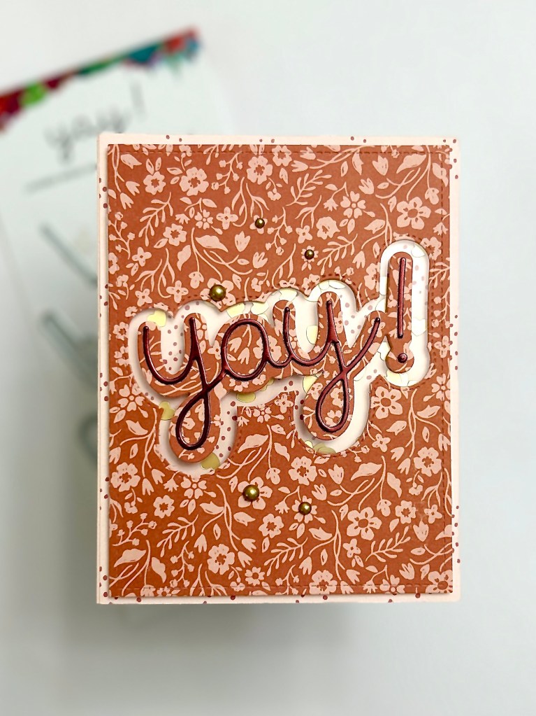 Today I’m sharing a floral shaker card I made recently using the Yay Layered Word dies from Emily Moore Designs.